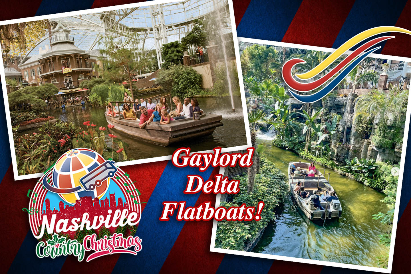 Tours & Attractions ~ Professional guided city tour of Nashville, walking tour of Gaylord Opryland Resort, Country Music Hall of Fame, free time in downtown Nashville, Delta Flatboat ride, ICE! at Gaylord, free time to explore Gaylord Opryland Resort, Fantasy In Lights at Callaway Gardens!